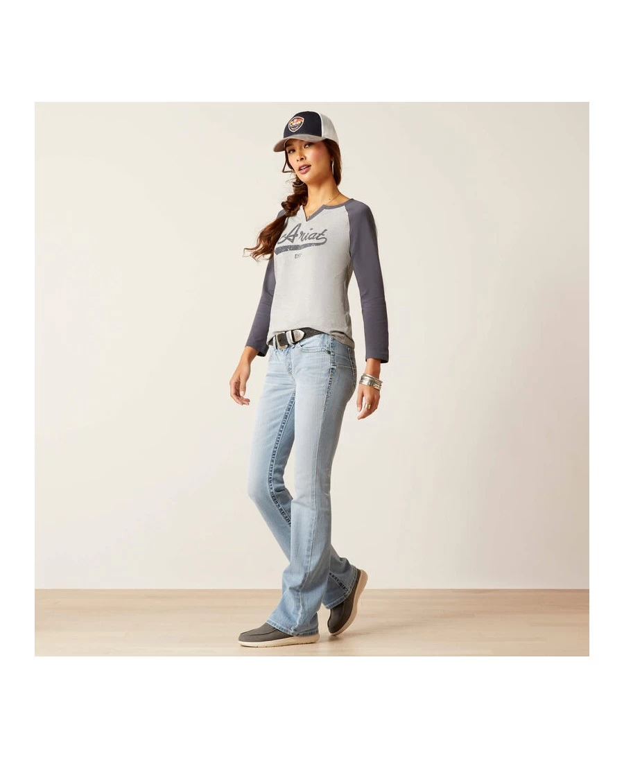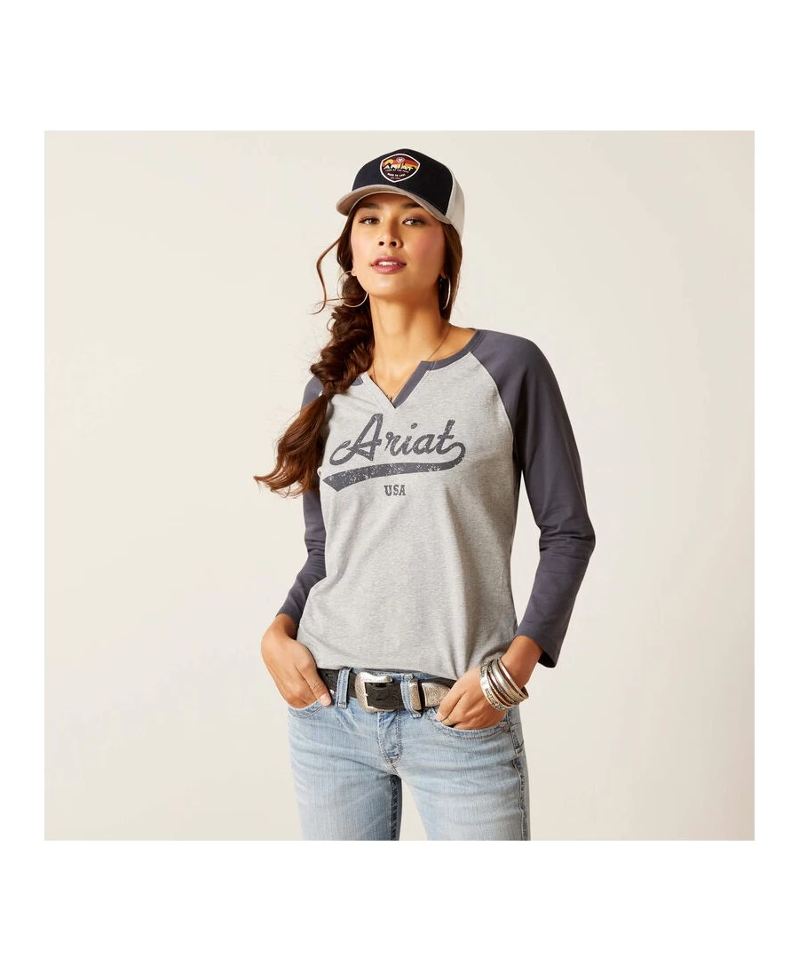 Nous avons mis au goût du jour le t-shirt de baseball classique en utilisant un jersey extra doux auquel s’ajoute le logo Ariat